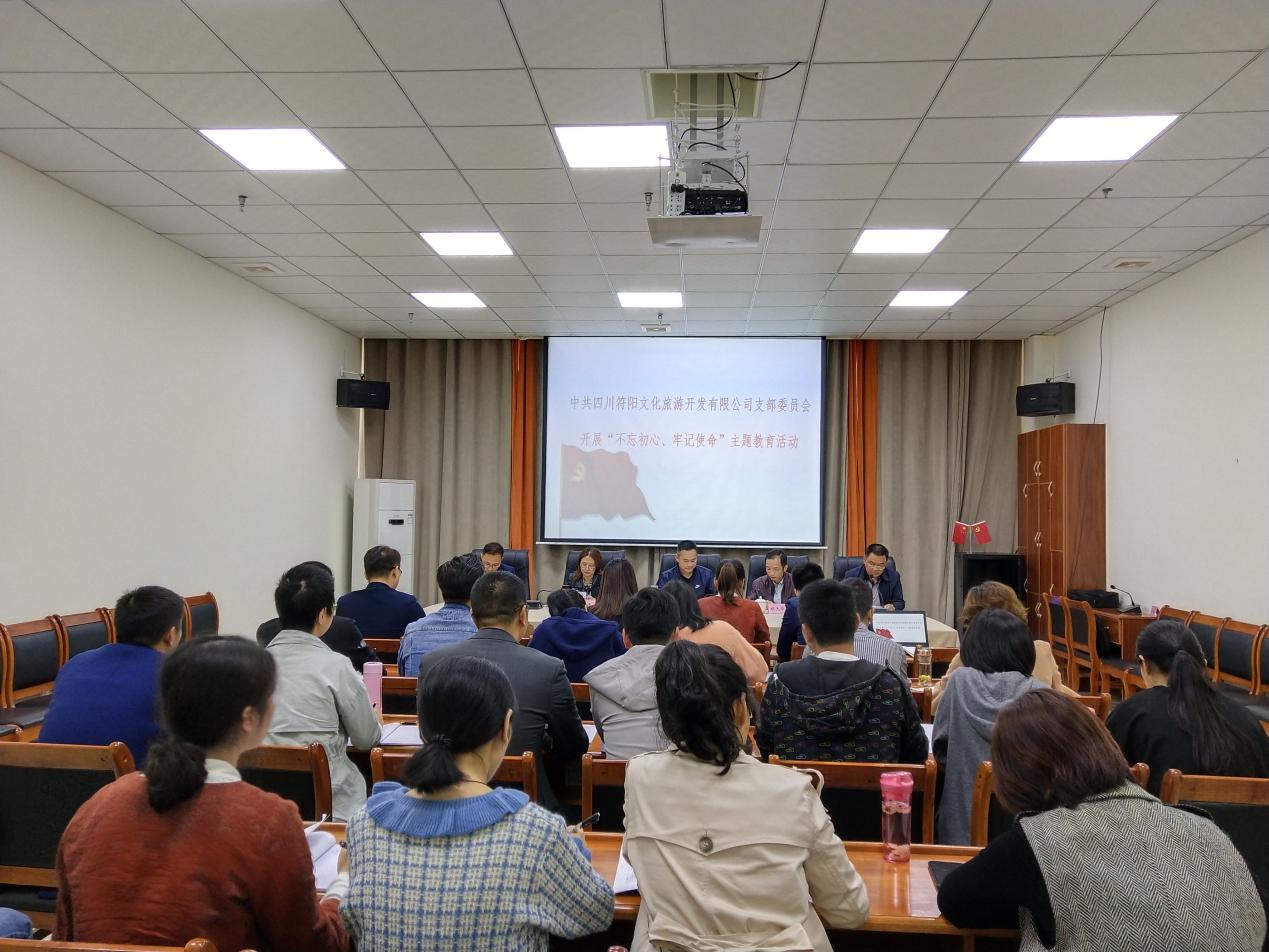 2019年10月17日下午,符陽文旅支部組織公司全體員工開展“不忘初心、牢記使命”主題教育推進會議,集團公司主題教育指導(dǎo)組組長胡天華、成員卓爾到會指導(dǎo)。