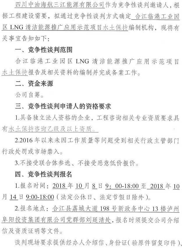 合江臨港工業(yè)園區(qū)LNG清潔能源推廣應用示范項目水土保持報告單位競爭性談判公告.docx