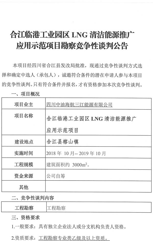 合江臨港工業(yè)園區(qū)LNG清潔能源推廣應用示范項目勘察競爭性談判公告.docx